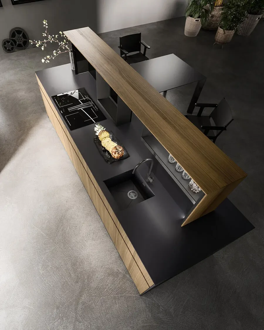 Incorporar madera en el mobiliario de cocina no significa renunciar a la modernidad. Los acabados actuales ofrecen tratamientos que garantizan durabilidad y resistencia al agua, manteniendo la textura y el calor visual que solo este material puede ofrecer.
