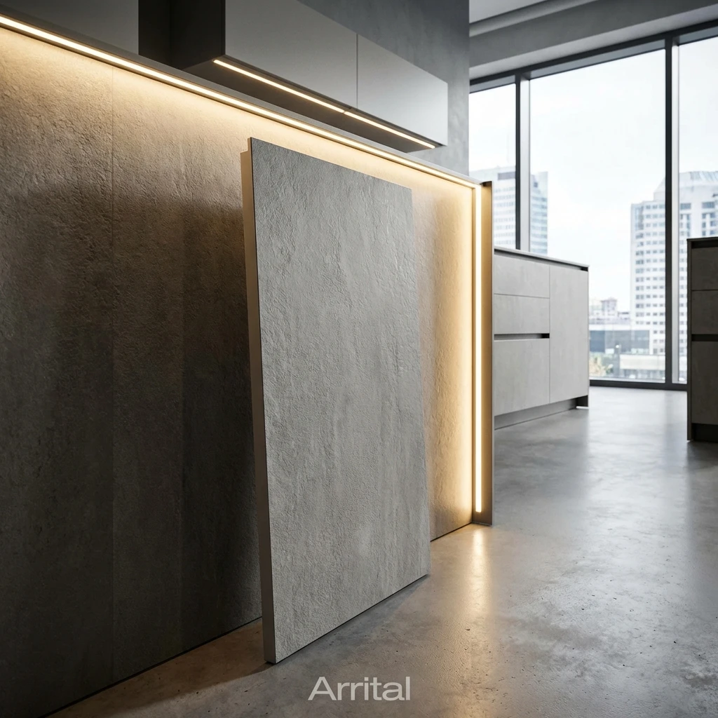 - Porcelánicos en Mobiliario Arrital: Arrital ha integrado los acabados porcelánicos en sus puertas y frentes, creando un bloque monolítico de diseño impresionante que solo firmas líderes pueden ofrecer.