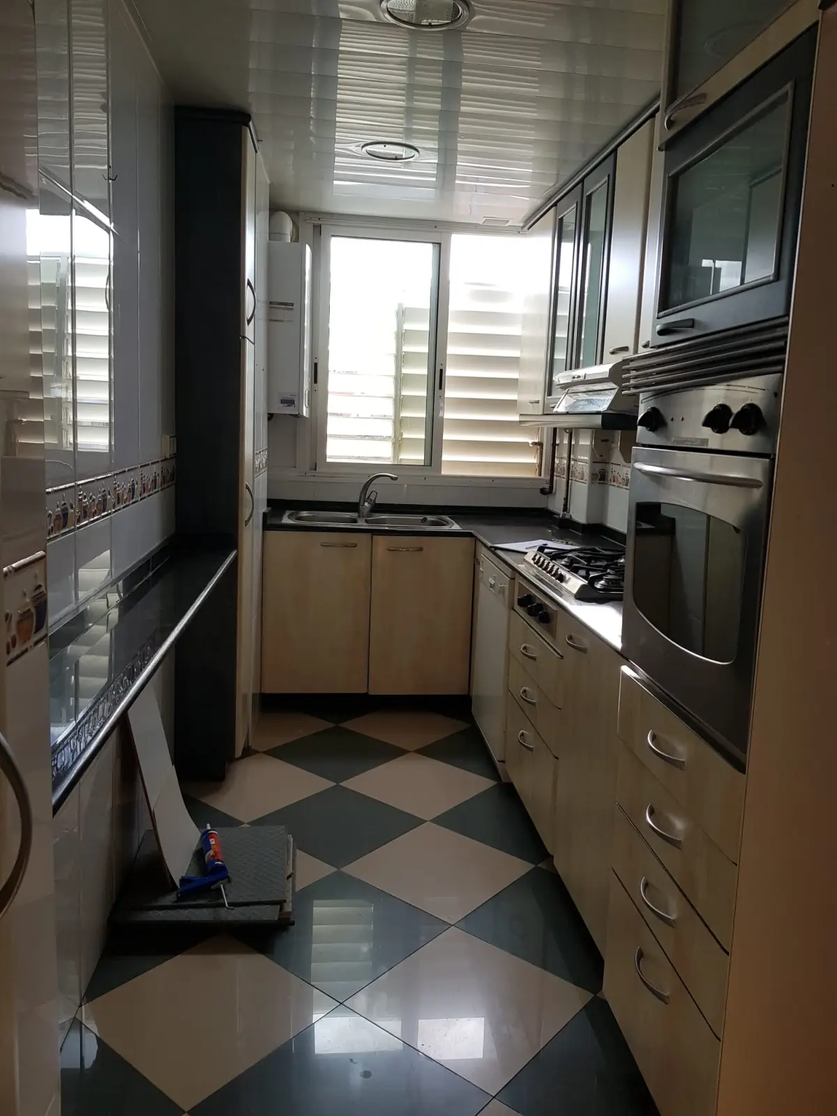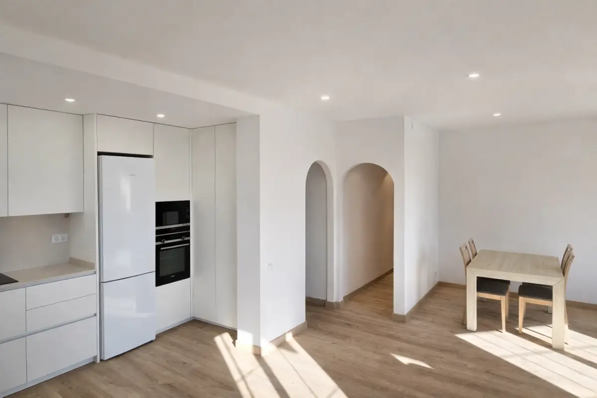 Reforma de una vivienda en pleno centro de Hospitalet de Llobregat, Rambla Just Oliveras. Abriendo cocina al salón y creando un espacio luminoso, cómodo y agradable.